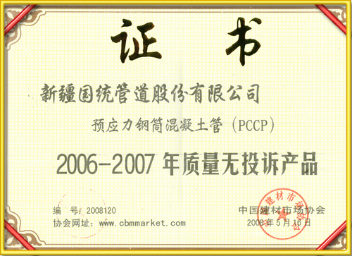 質(zhì)量無投訴產(chǎn)品質(zhì)量證書